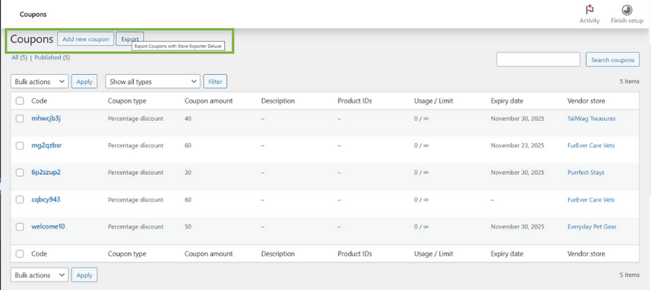 Here’s how to export your WooCommerce coupons step by step: